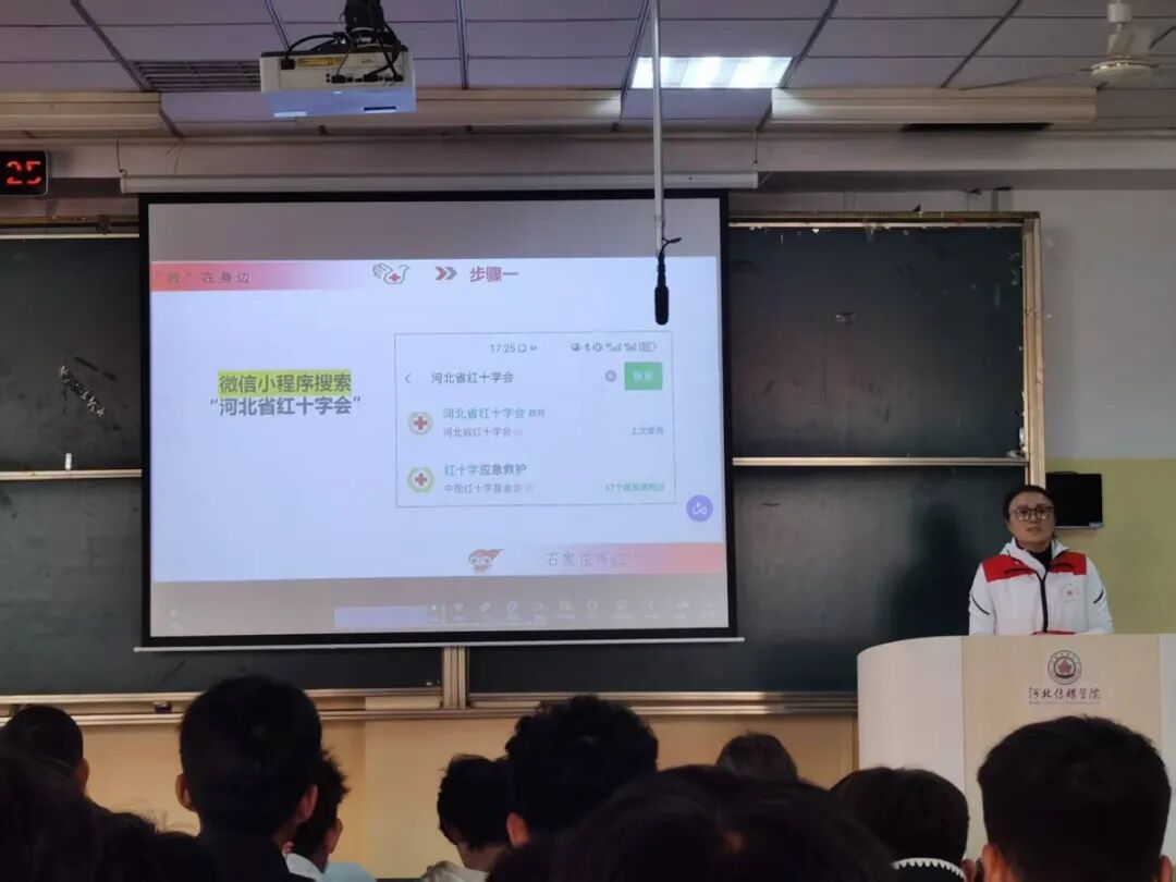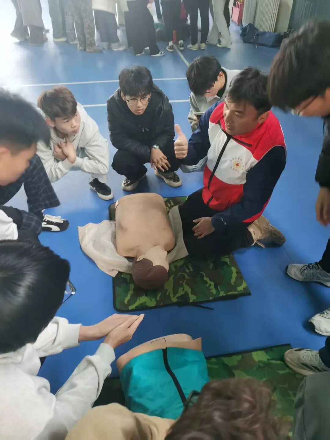 10月31日,艺术体育学院邀请石家庄市红十字会的救护人员在警安校区101、102、104、201、301教室为25级休闲体育专业部分学生进行CPR+AED急救培训。本次培训旨在提高学生的应急救护能力,增强面对突发紧急情况时的个体生存能力。培训共4课时,三个环节:理论讲解、实操练习和考核。红十字会的培训老师系统讲述了心肺复苏(CPR)的正确操作流程和如何正确使用自动体外除颤仪(AED),将操作紧急性带入心肺复苏的应用场景,让大家可以全面深入地学习。