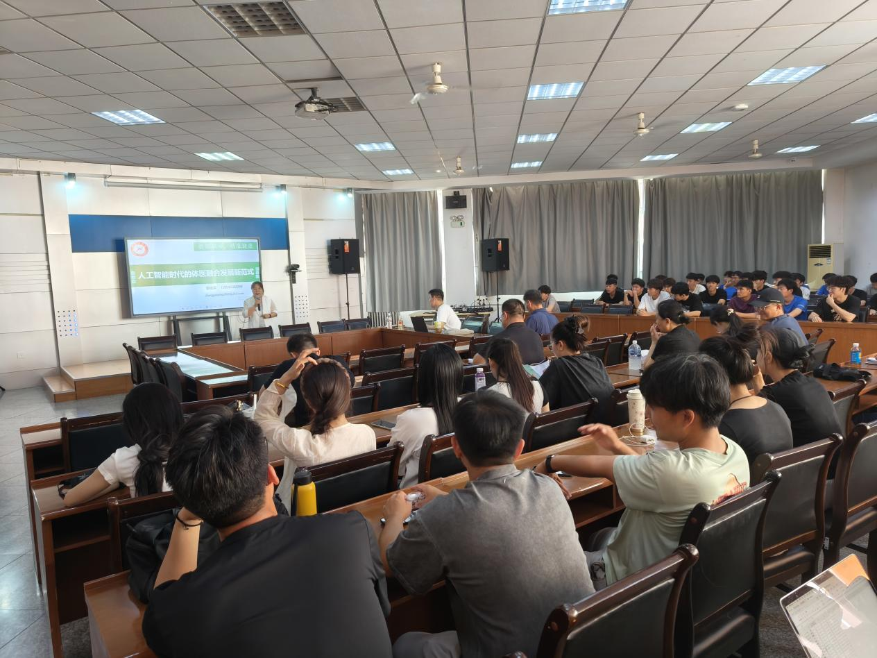 2025年6月13日13时30分,艺术体育学院于警阶401举办“人工智能时代的体医融合发展新范式”专题讲座。哈尔滨学院姜桂萍博士受邀主讲,学院院长郎振国主持,众多师生积极参与。