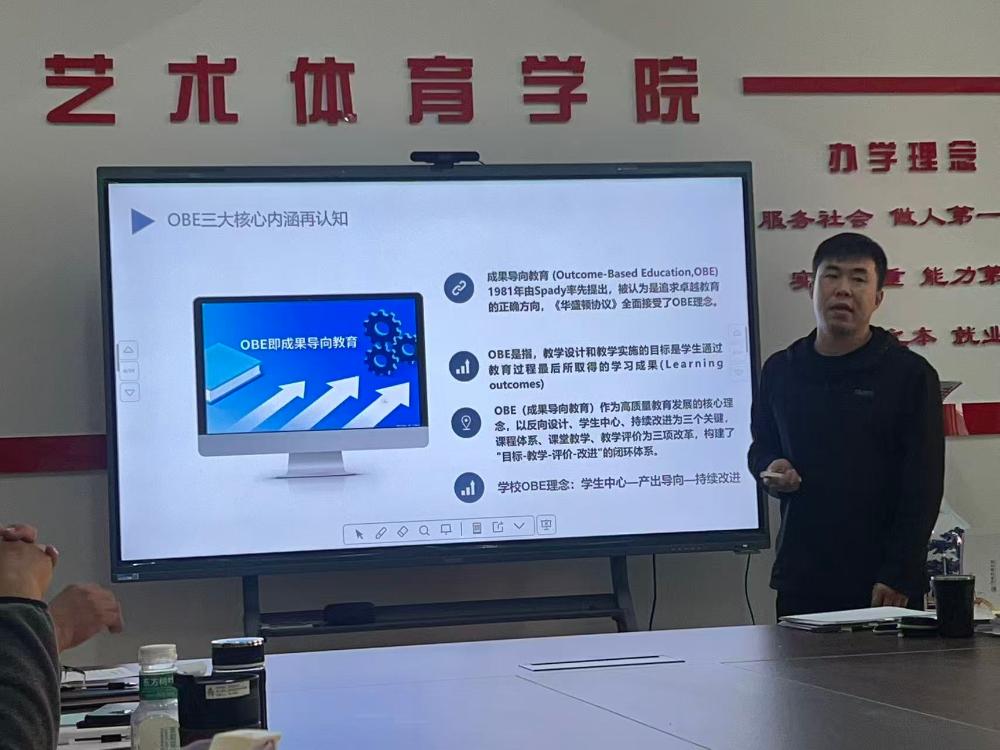 结合学校的“十月课堂教学提升月”活动,我院为深入推进 OBE(产出导向、学生为中心、持续改进)理念在教学实践中的落地,实现“人才培养方案—教学大纲—课程目标—教案设计”的同向同行,构建高质量人才培养闭环,10 月 24 日下午,我院组织开展OBE理念专题培训。本次讲座由休闲体育专业、运动康复专业和表演(体育表演)三个专业的负责人分别进行讲授,全院教师参会学习。