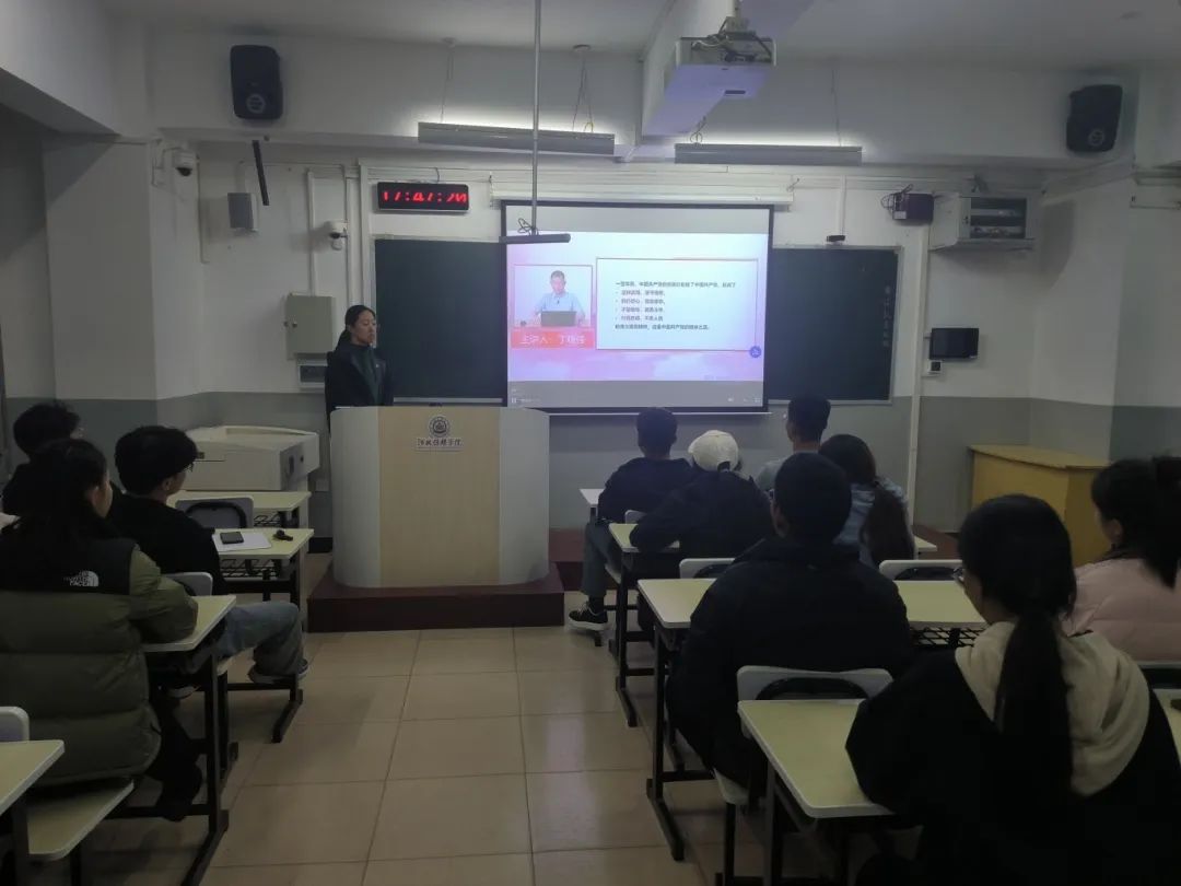 学生党支部书记刘伟花老师带领大家回顾抗美援朝的历史背景、战斗英雄、学习抗美援朝精神,结合学习、生活对党员和积极分子提出了要求。