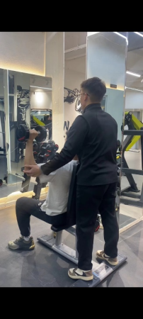 2.2023级休闲体育专业九班潘思诚同学在河北省唐山市迁安市魔兽健身进行教学实践。