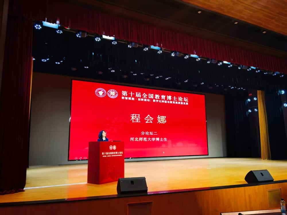 本次大会共有48家教育博士培养单位及近500名博士生参与,经两轮筛选,从众多博士投稿论文中遴选128篇优秀论文进行大会论坛报告。我校艺术体育学院副院长、河北师范大学教育学院博士生程会娜撰写的《人工智能时代学校体育治理文化的内涵诠释、现实困囿与纾解策略》论文获评优秀论文,并作分论坛报告。该教师还以博士生身份代表第二分论坛在大会闭幕式上作分享。