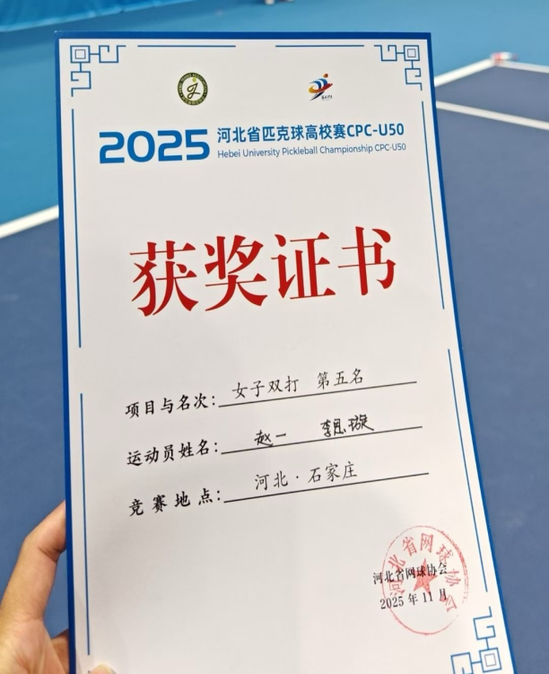 1123日,“2025年河北省匹克球高校赛”顺利落幕,张浩老师带领休闲体育专业36名学生参赛,斩获122铜亮眼成绩,具体奖项包括女双冠、亚、季军、女单亚军及混双季军,充分展现我校匹克球教学成果与学子竞技风采。
