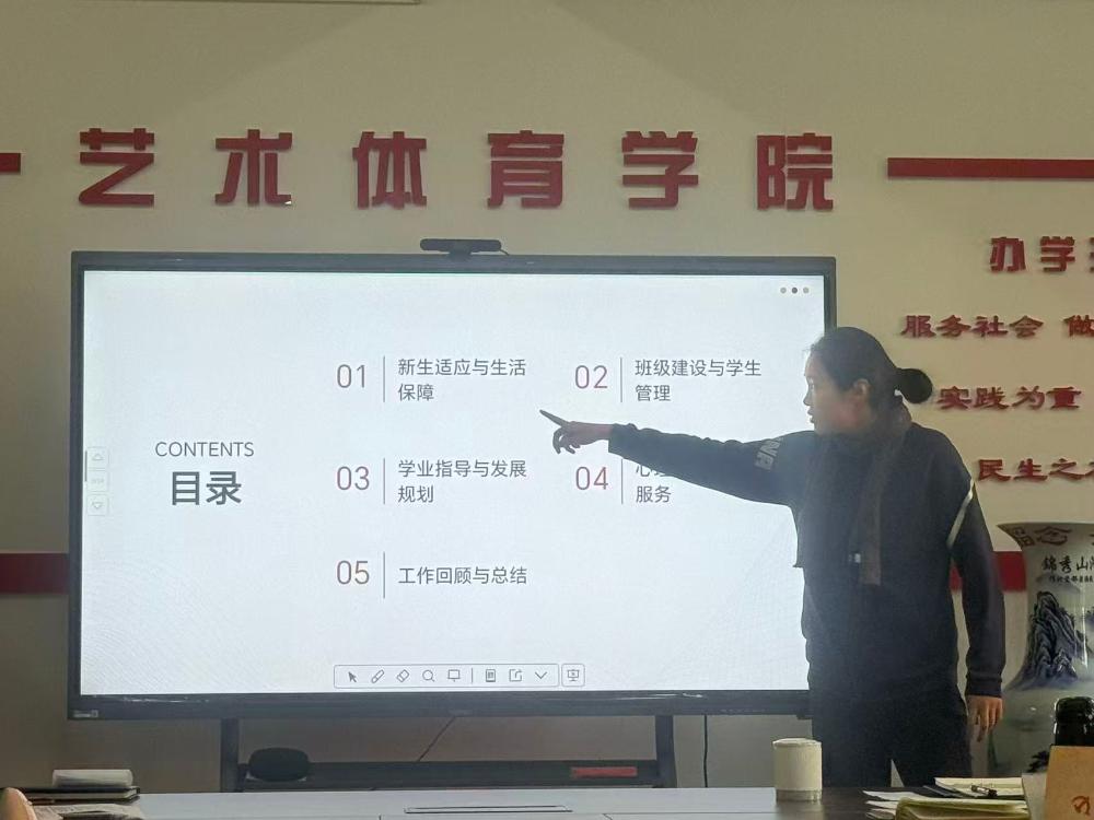 为进一步加强辅导员队伍建设,全面总结年度学生工作成效,提升思政育人工作水平,2025年12月16日,在主教楼107会议室,艺术体育学院隆重召开2025年度辅导员工作考核汇报会。学生处处长秦丙峰、艺术体育学院院领导班子全体成员,以及各教研室主任、全体辅导员出席会议。