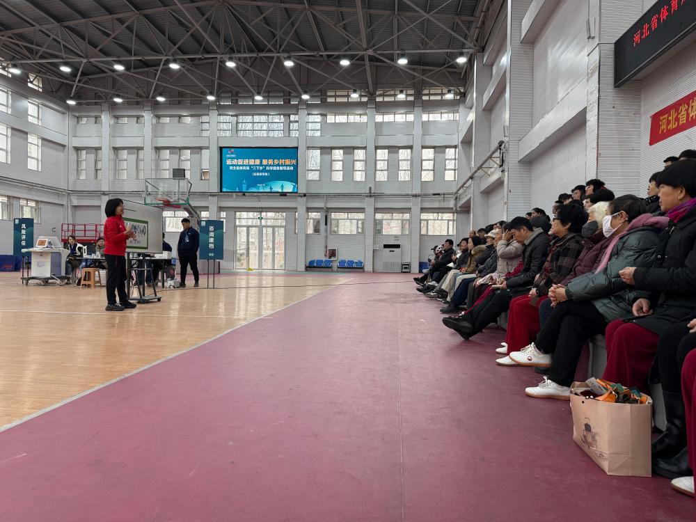 为深入贯彻落实省委、省政府乡村全面振兴工作部署,推动“体医融合”服务体系向农村基层延伸覆盖,根据中共河北省委宣传部相关文件精神,12月23日,河北省2025年度文化科技卫生“三下乡”任泽专场集中服务活动在邢台市任泽区全民健身中心正式启动。河北传媒学院艺术体育学院副院长程会娜作为省体育局体医融合专家库成员受邀参加,在科学健身大讲堂环节作《科学健身、健行安康》的专题授课;学院22级休闲体育专业保健康复方向学生潘策以工作人员身份全程参与服务,充分彰显了我校扎根河北、服务地方的办学宗旨与体育专业人才培养成效。