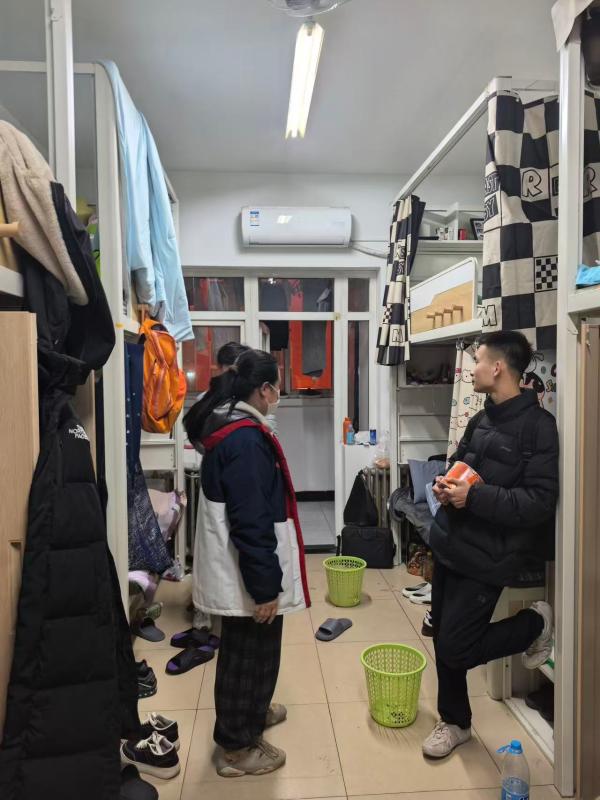 此外,辅导员们深入学生宿舍开展实地检查,逐间查看宿舍卫生状况、基础设施完好情况及用电安全隐患,对发现的问题现场记录、及时督促整改。检查过程中,辅导员与提前返校的学生亲切交流,细致了解学生思想动态、返校情况与生活需求,叮嘱大家注意人身财产安全,保持良好生活习惯,以饱满的精神状态迎接新学期。
