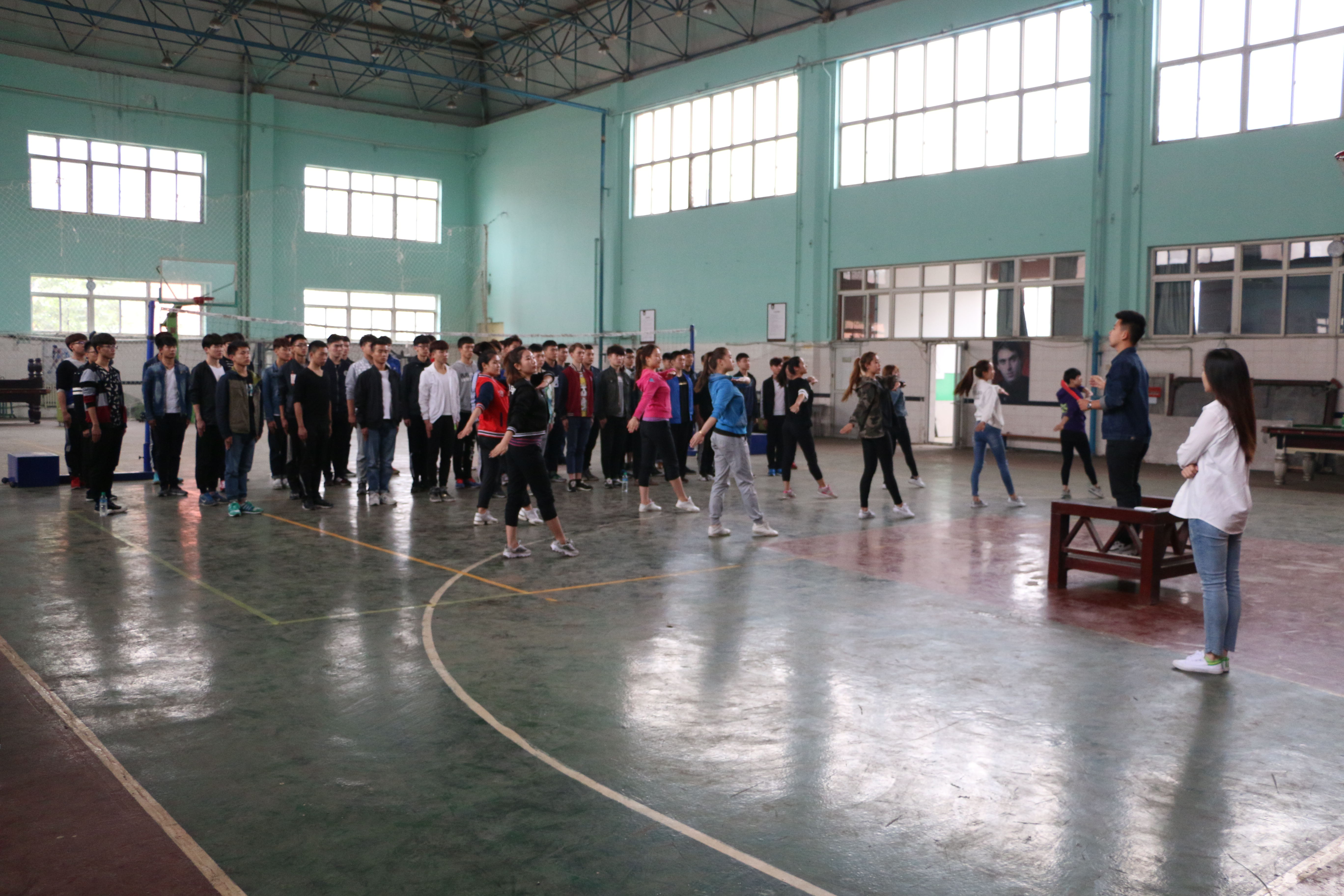为迎接4月29日学校举行的红歌赛, 4月19日12点,我院天籁合唱团在篮球馆进行演唱及舞台肢体协调方面的培训。我院领导对此次比赛高度重视,特邀请了舞蹈艺术学院马晓娟老师对参赛人员进行专业指导。