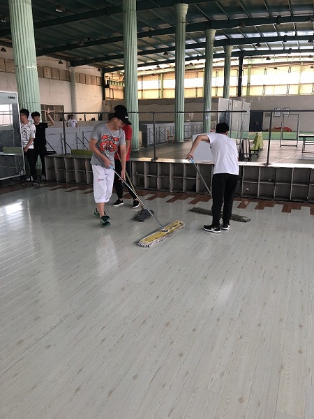 活动主要是对学校综合馆整体的器材进行摆放、损坏进行排查、卫生进行打扫等。
